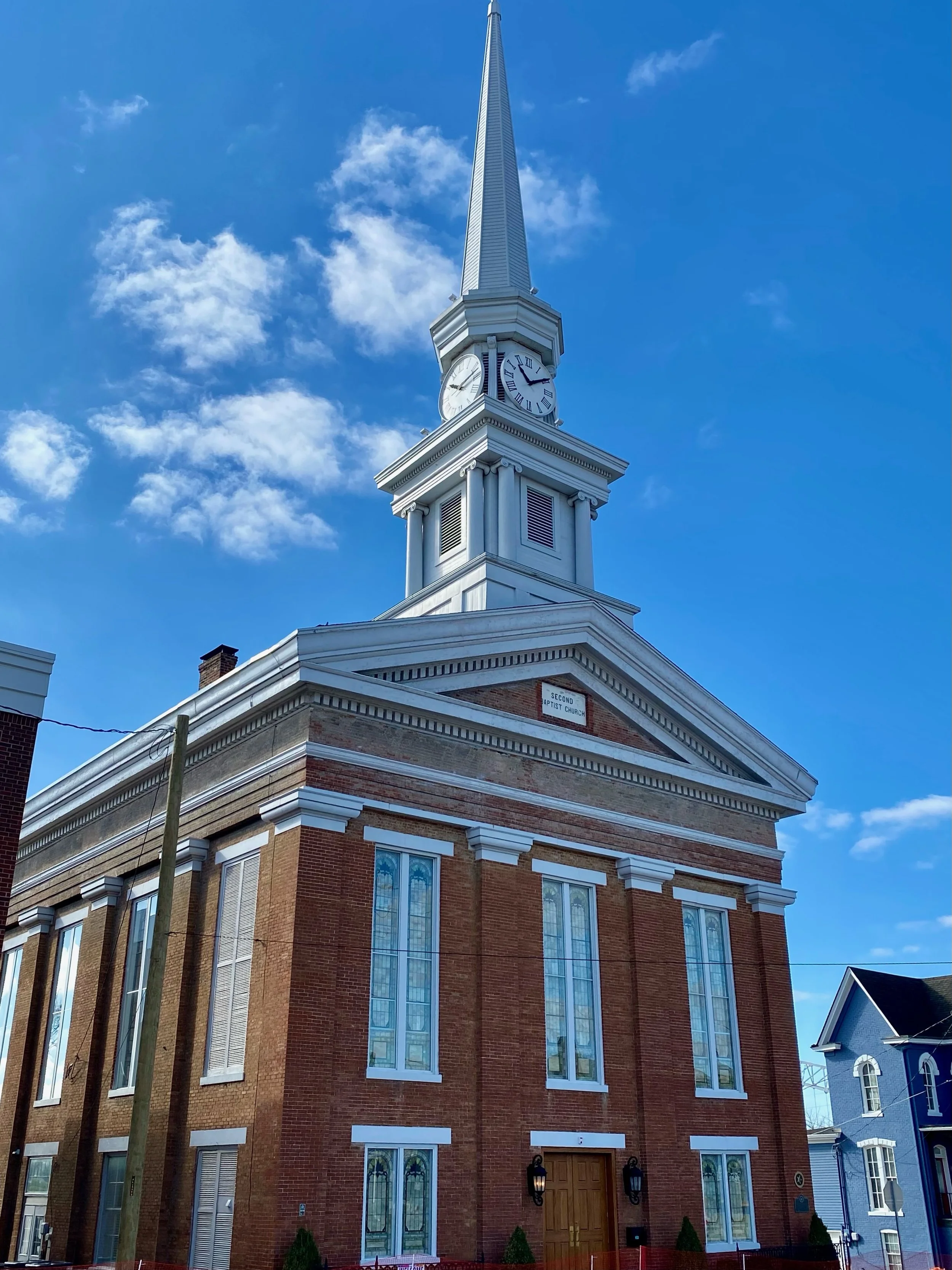 The building’s construction dates 1849-1852, and was built by New Albany builder, Isaac P. Smith. The Second Presbyterian Church, now St. John’s Presbyterian, was involved in the Underground Railroad. Since 2013 Reverends Leroy and Joyce Marshall, Jr along with the Friends of the Town Clock Church have raised over $1,000,000.00. Recent projects include installation of a replica of spire, interior/exterior renovations, creation of a garden, and replica of a 12-light electrified gasolier.